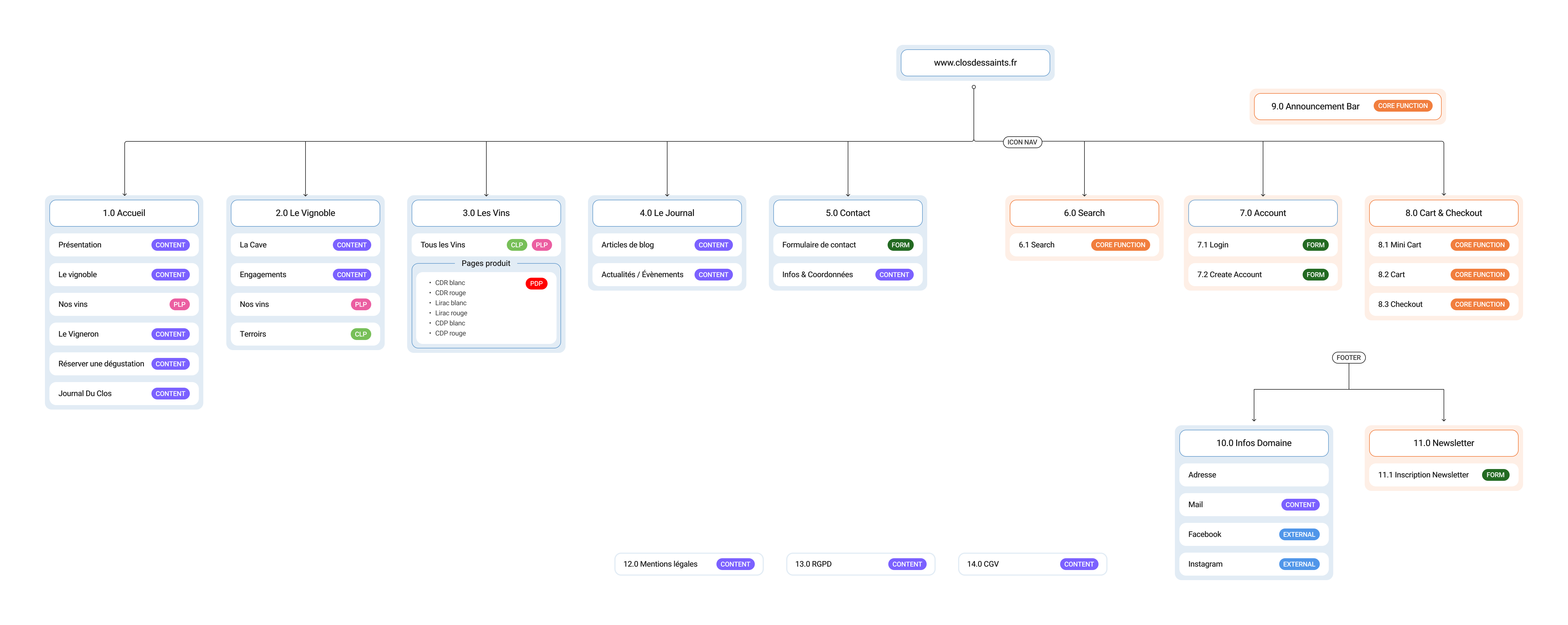 The website was conceived as both a brand showcase and a long-term e-commerce foundation. Its primary role is to introduce Clos des Saints, highlight its appellations, and express the winemaker’s commitment to the land and to vinification. From the early stages of the project, it was clear that the platform would also need to support direct-to-consumer sales in the medium term. Shopify was therefore selected as the CMS, offering a flexible and scalable solution for product, order and stock management while allowing the business to grow organically.