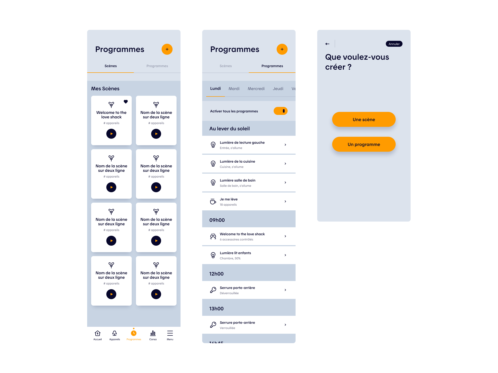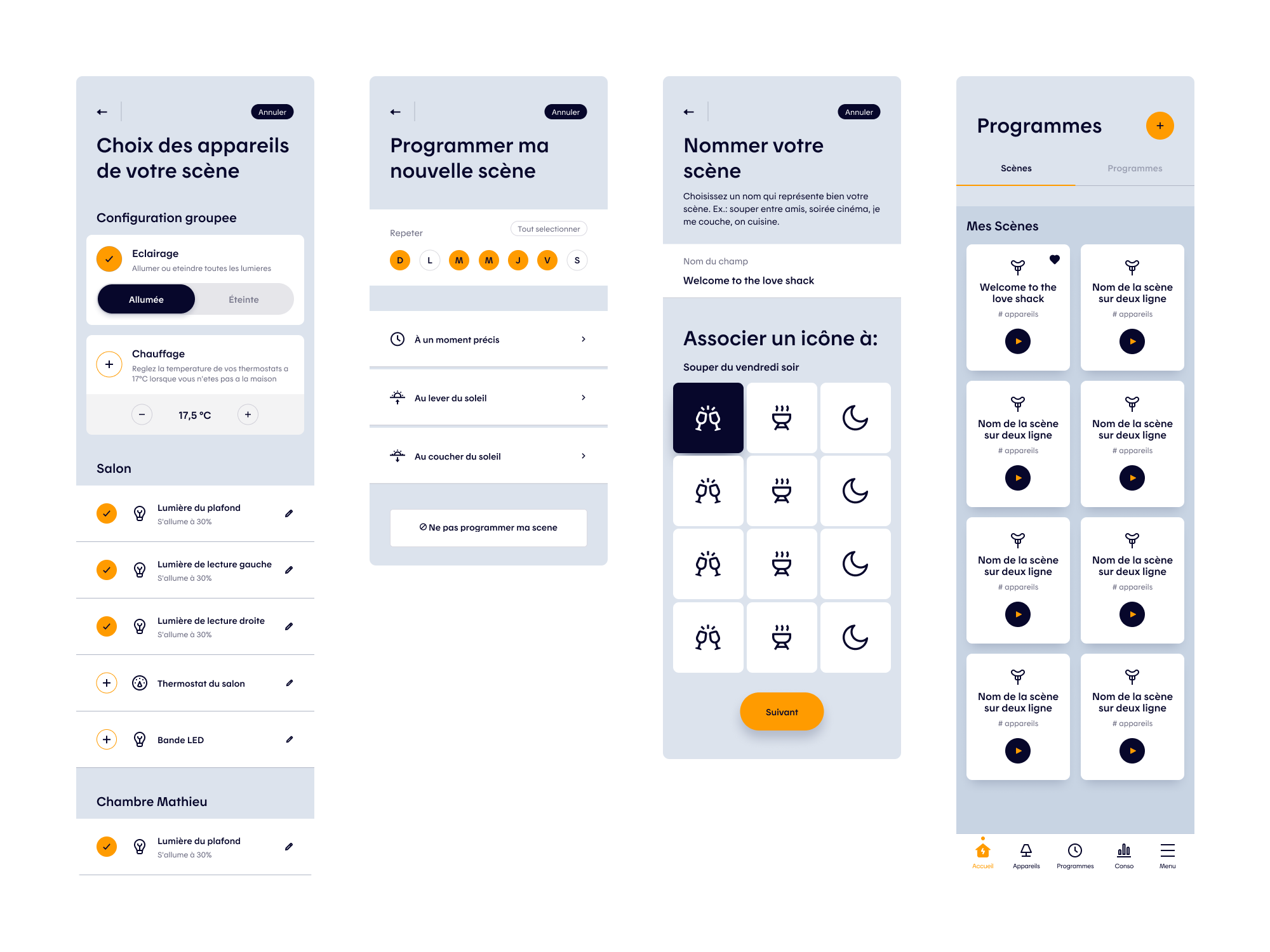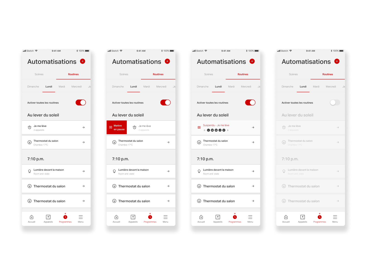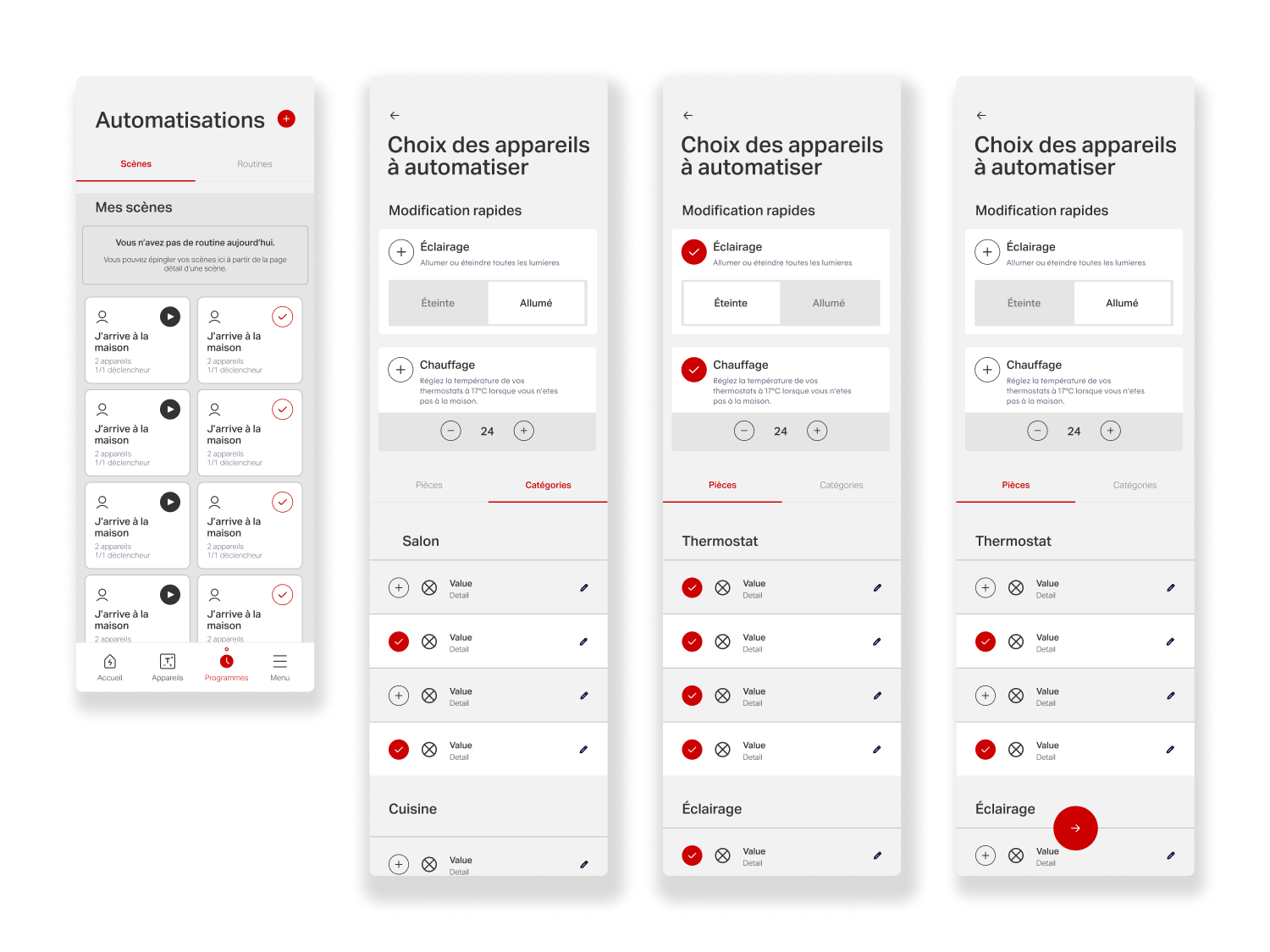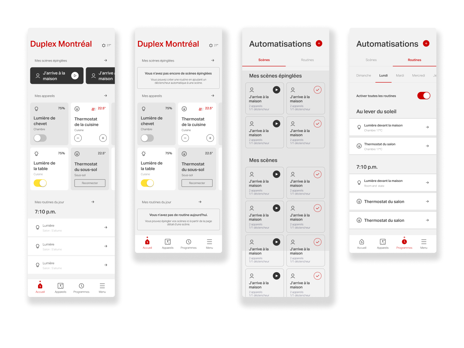 A second key project focused on evolving the app’s Scenes & Routines (Programs) experience, which enables users to automate actions across their connected devices, such as lighting, heating, and other smart systems. Routines allow users to define behaviors that trigger automatically based on time or context: lowering thermostats overnight and restoring comfort before wake-up, reducing heating and turning off lights when leaving home, or reactivating them upon return. They also support mood-based scenes, such as dimmed lighting for family dinners or movie nights.