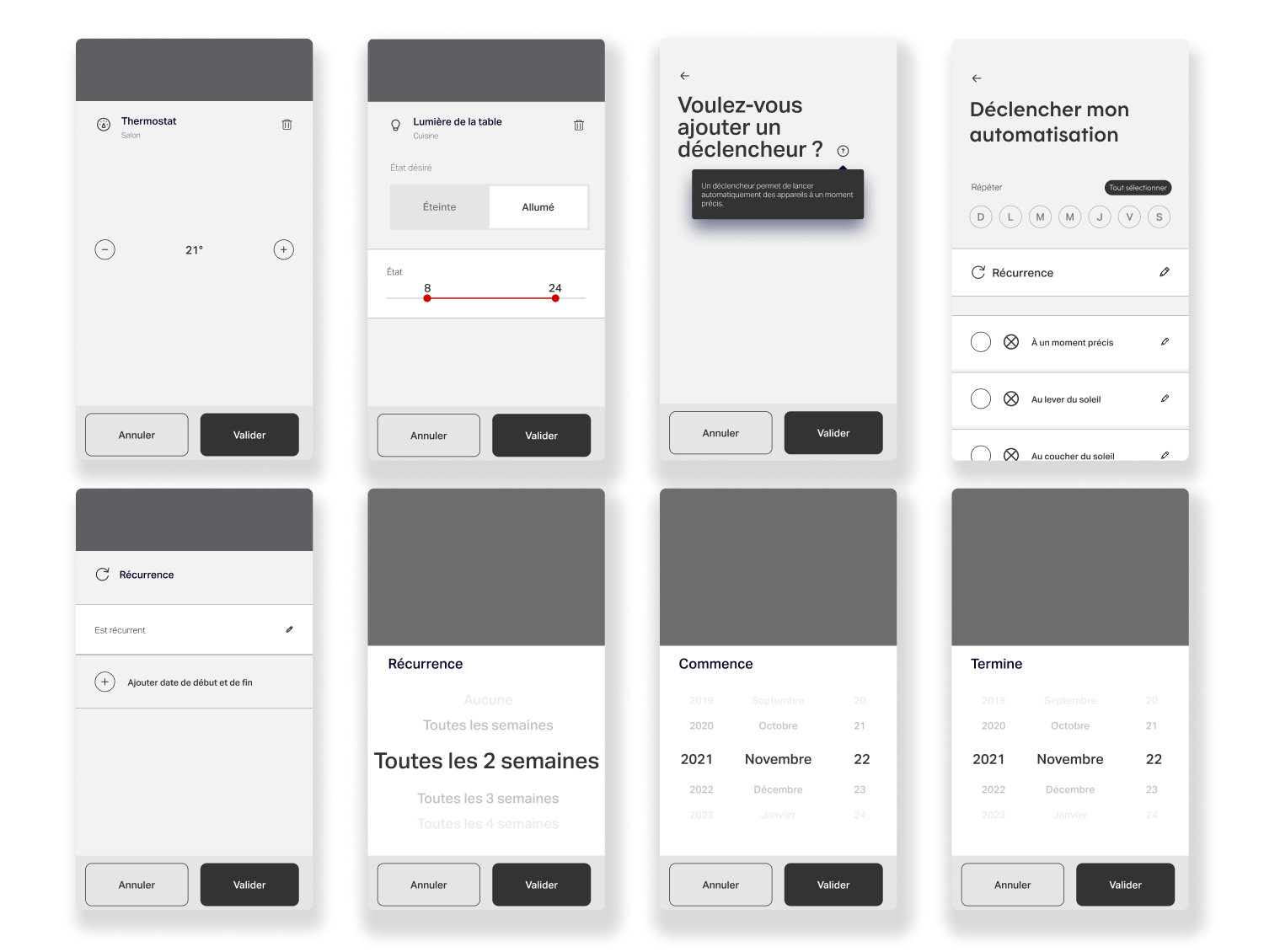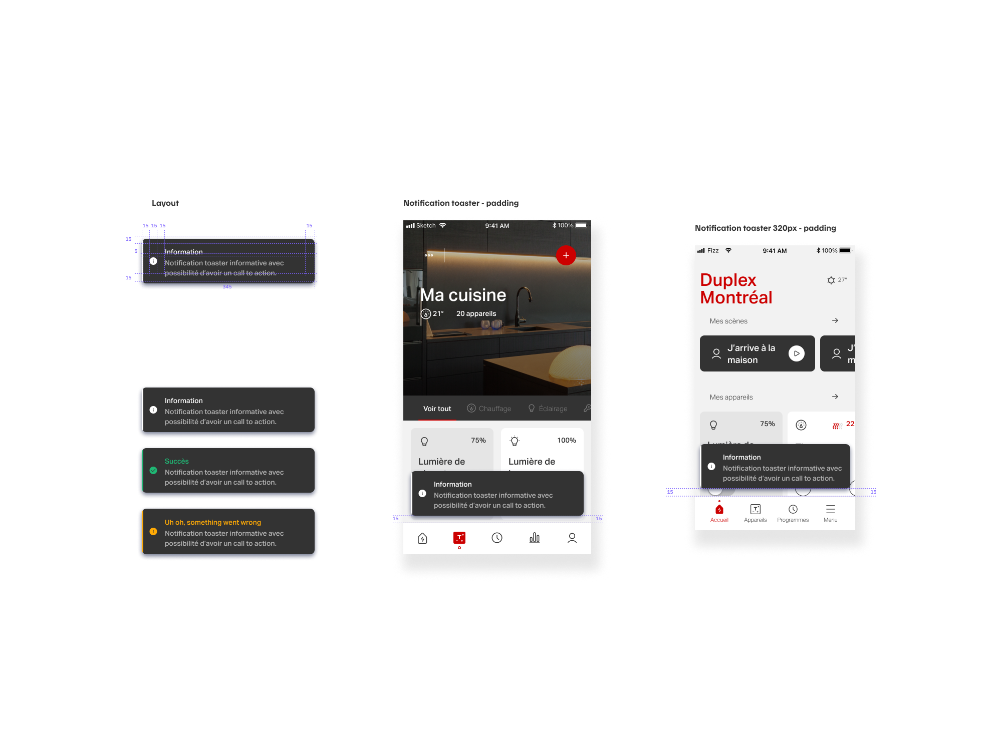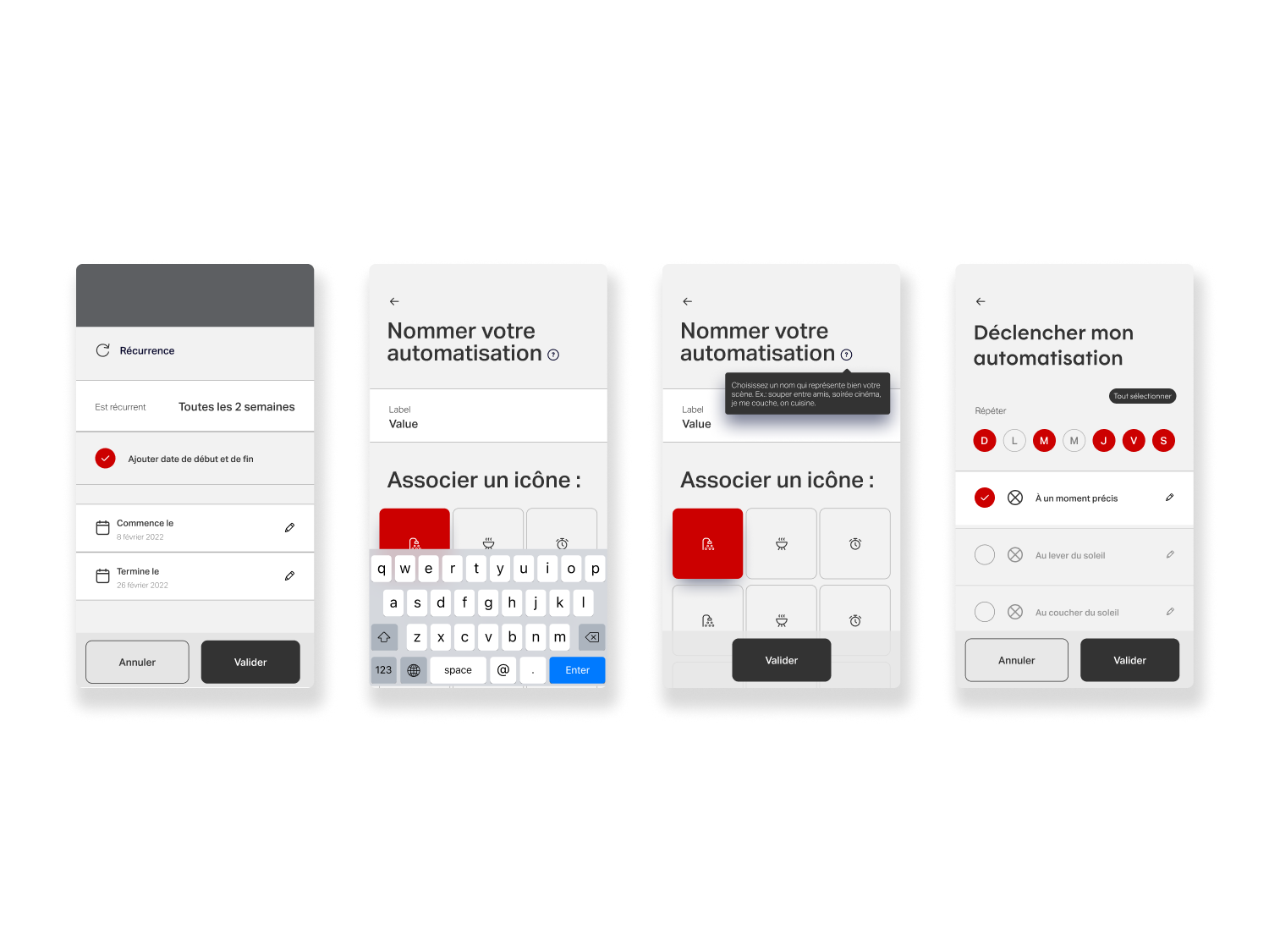 In addition, we created toaster notifications to improve the app’s feedback overall and specifically for automations creation. We also added new icons (Rooms and Location, Action, Ambiance, and Devices) with on/off states to deepen flexibility and personalization to the scenes and routines configuration.