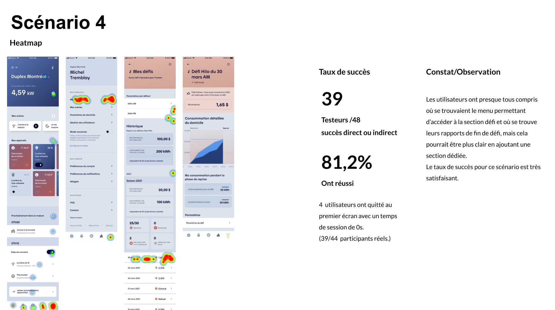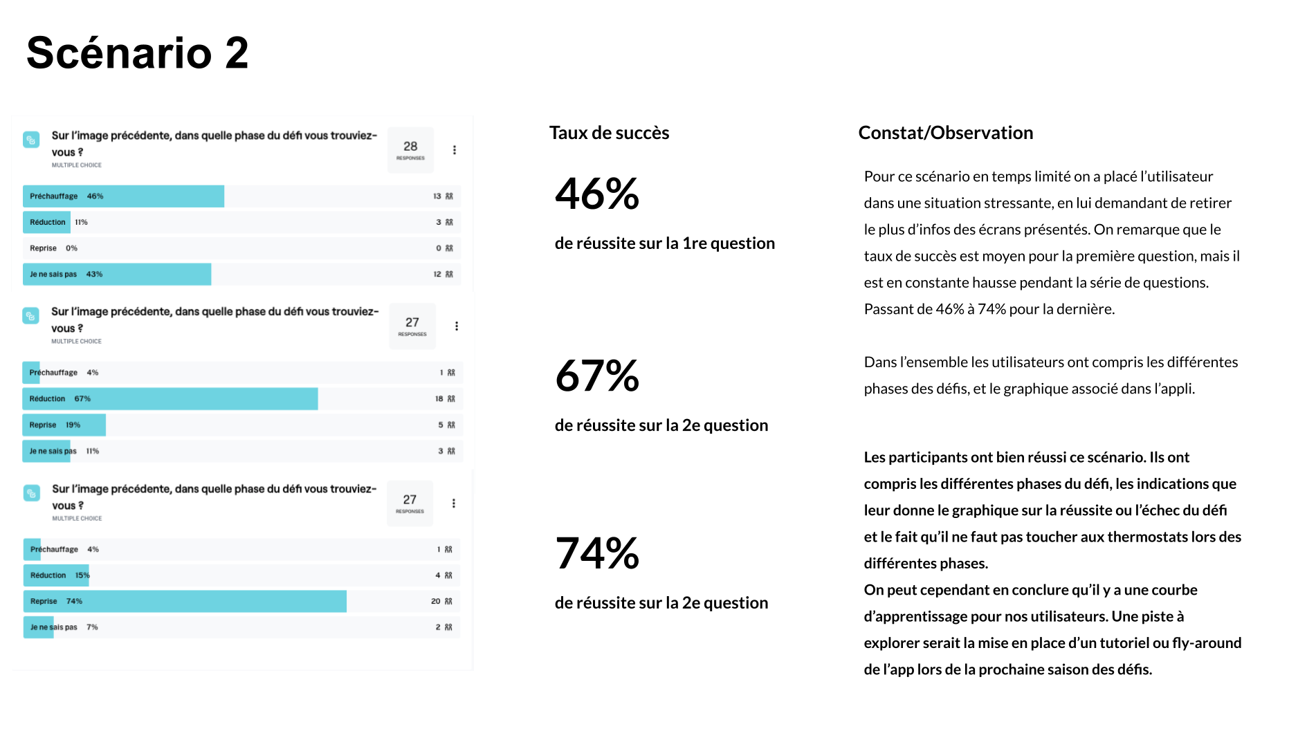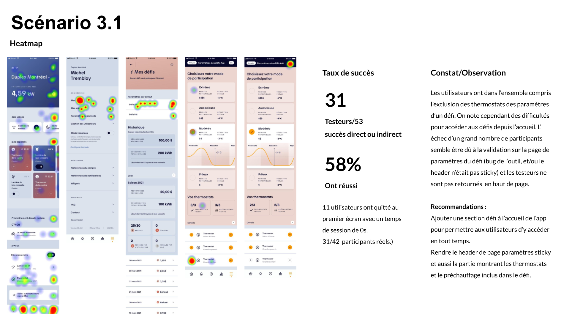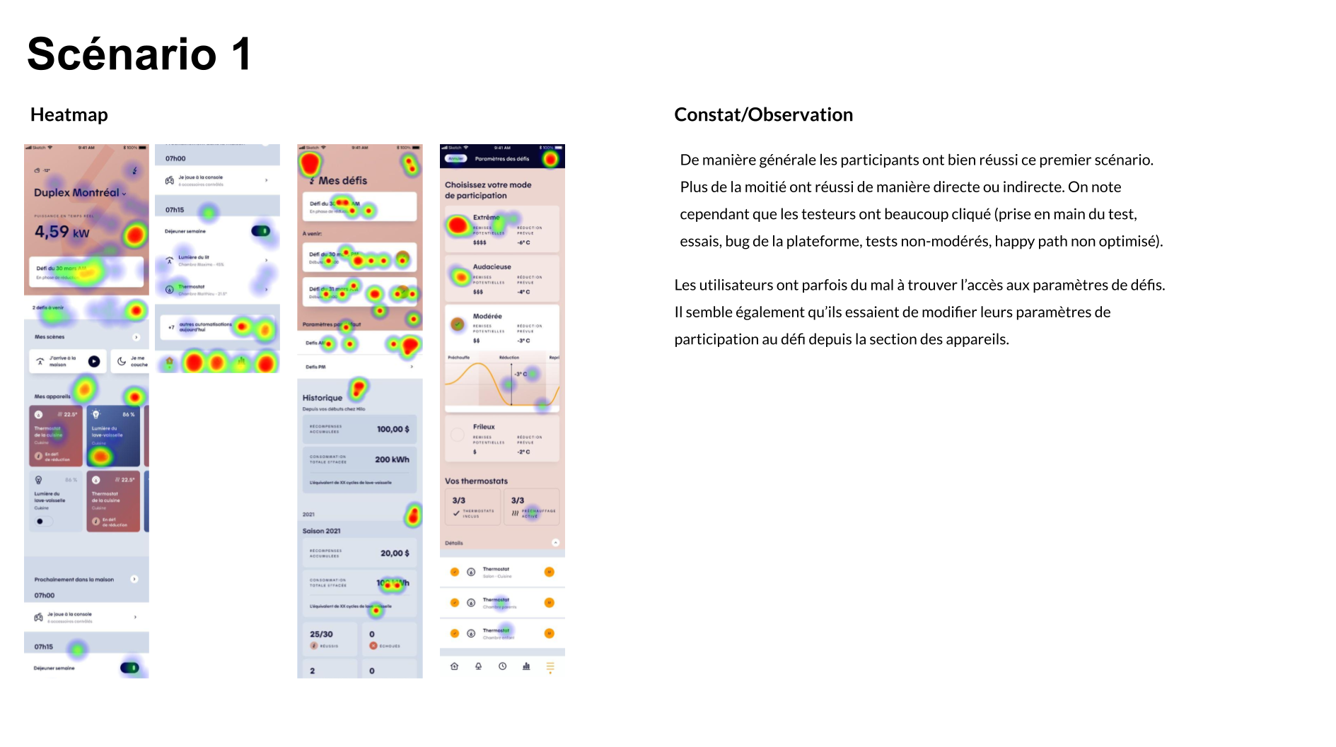 From a product perspective, the work aimed to reduce friction in key user actions: interpreting consumption data, understanding challenge outcomes, adjusting participation modes, and managing device inclusion during challenges and preheating phases. UX wireframes, UI design, interactive prototypes, and remote unmoderated testing (Maze) were leveraged to validate comprehension, surface usability gaps, and inform iterative design decisions.