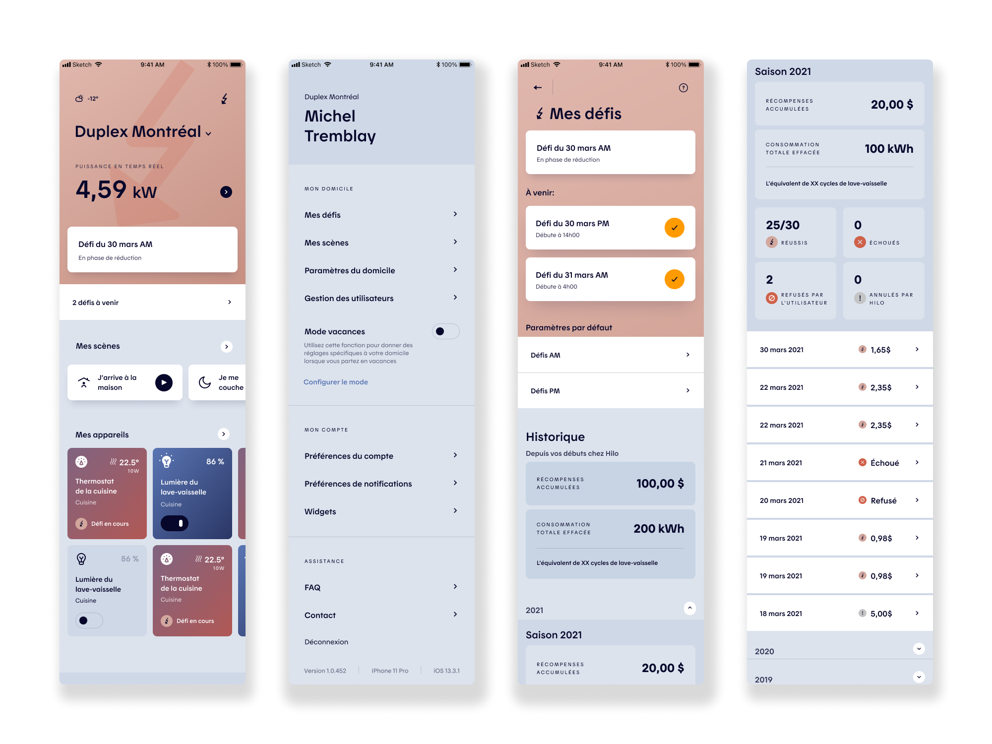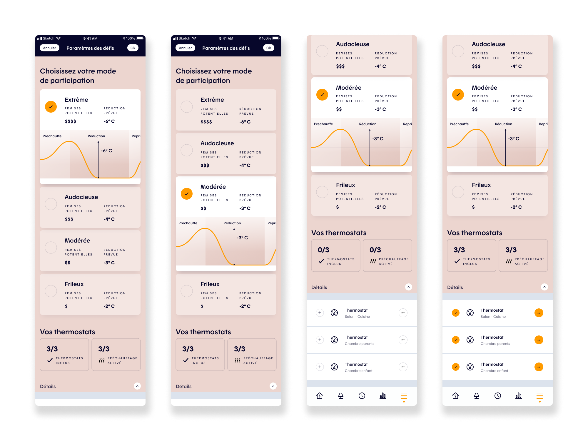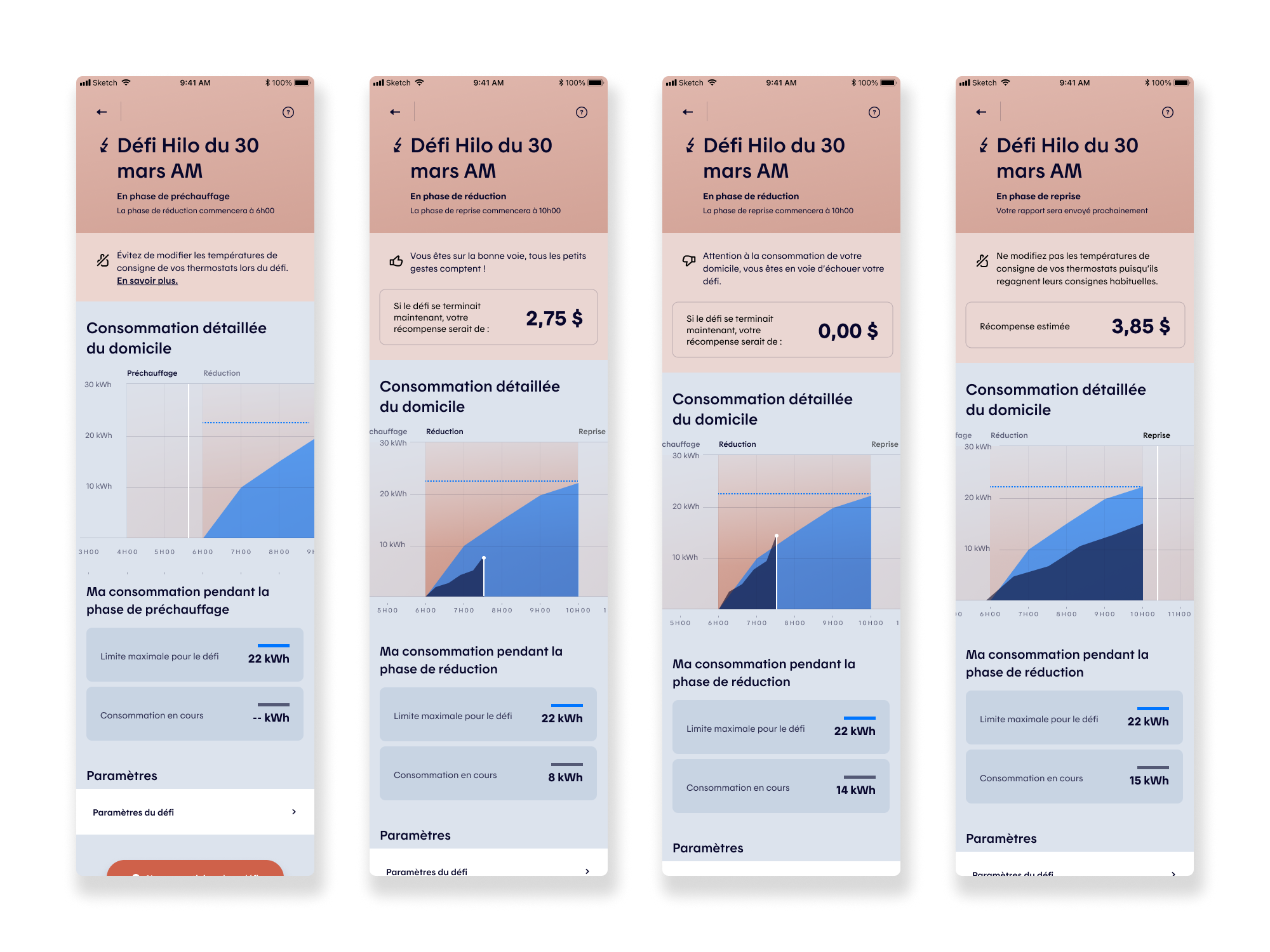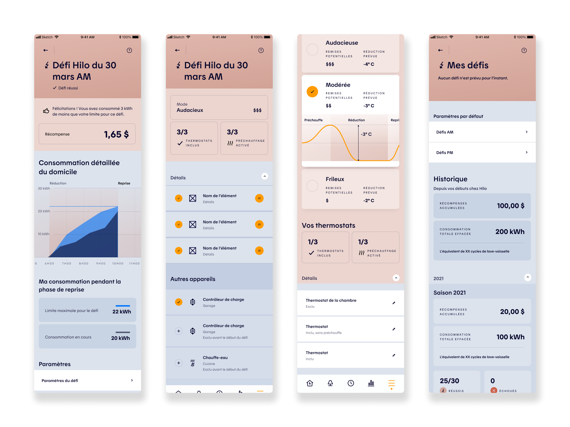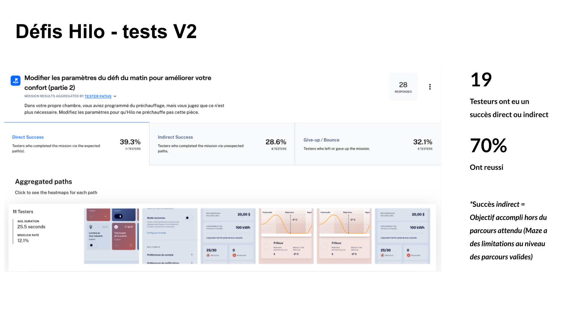 From a product perspective, the work aimed to reduce friction in key user actions: interpreting consumption data, understanding challenge outcomes, adjusting participation modes, and managing device inclusion during challenges and preheating phases. UX wireframes, UI design, interactive prototypes, and remote unmoderated testing (Maze) were leveraged to validate comprehension, surface usability gaps, and inform iterative design decisions.